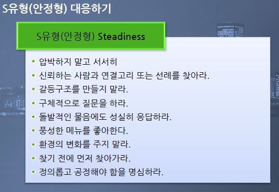 - S 타입을 대할 땐 모험을 걸고 자신이 느끼거나 생각하는 것을 말하는 것이 효과적임