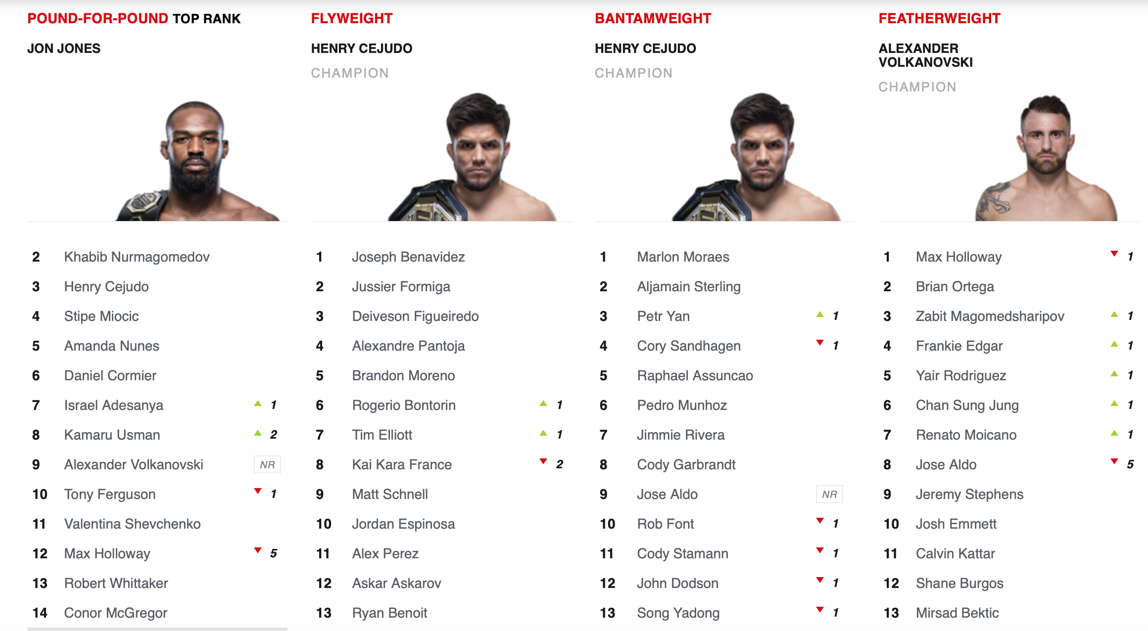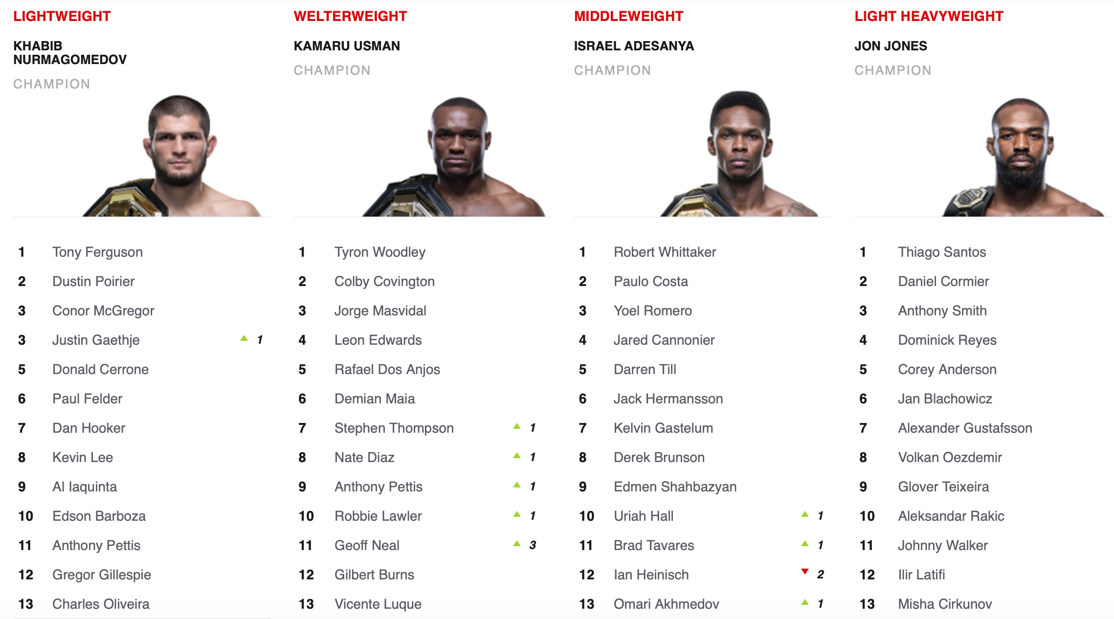 이 참에 UFC 각 체급별 랭킹도 알려드립니다.