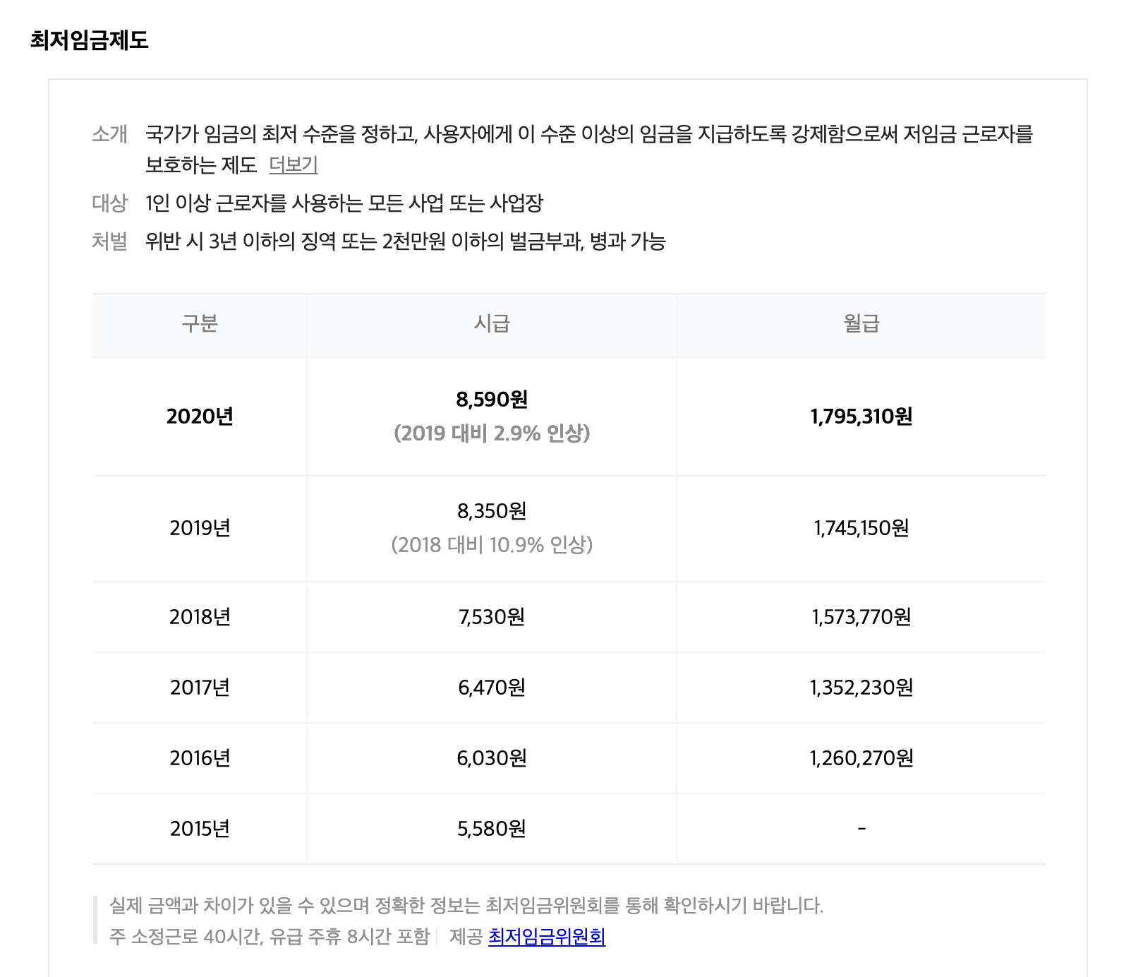 2020년 최저임금은 바로!! 8590원입니다. 19년대비 2.9% 인상된 금액입니다.
