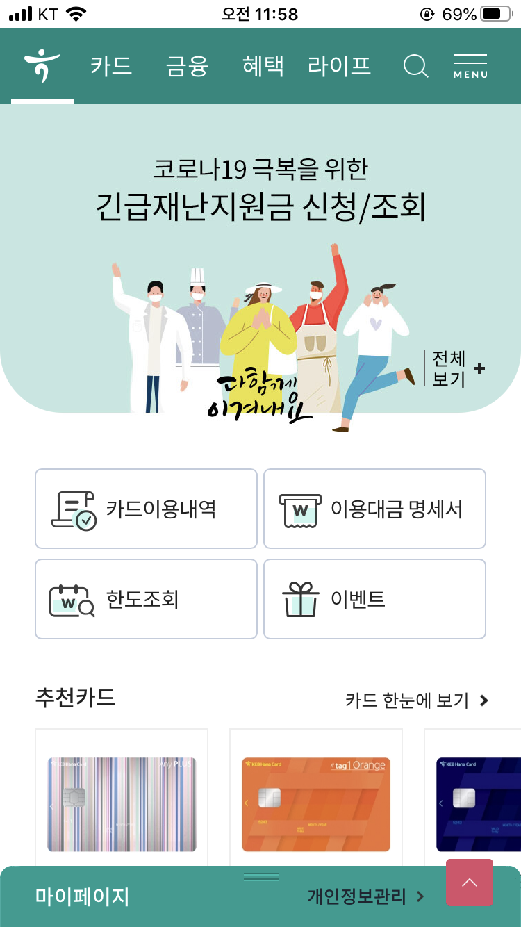 필요한 것은 하나카드 앱을 설치해야한다는 것입니다.