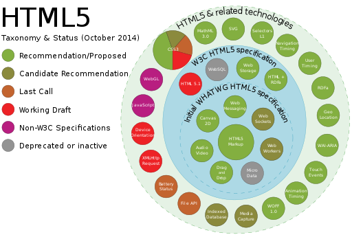 HTML5는 W3C와 WHATWG(Web Hypertext Application Technology Working Group)의 합작품이라 볼 수 있겠습니다. WHATWG는 애플, 구글, 모질라 재단, 오페라 소프트웨어 등이 2004년에 만든 단체인데, 웹폼과 애플리케이션에 대해 작업하던 도중 W3C와 만나 서로 협동하기로 하고 새로운 HTML 규격을 제안하게 되었는데, 그게 바로 HTML5입니다.