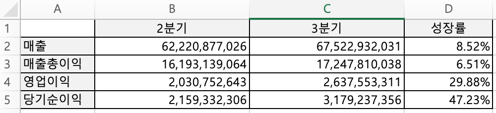 이를 바탕으로 전분기 대비 성장률 계산해보았습니다.