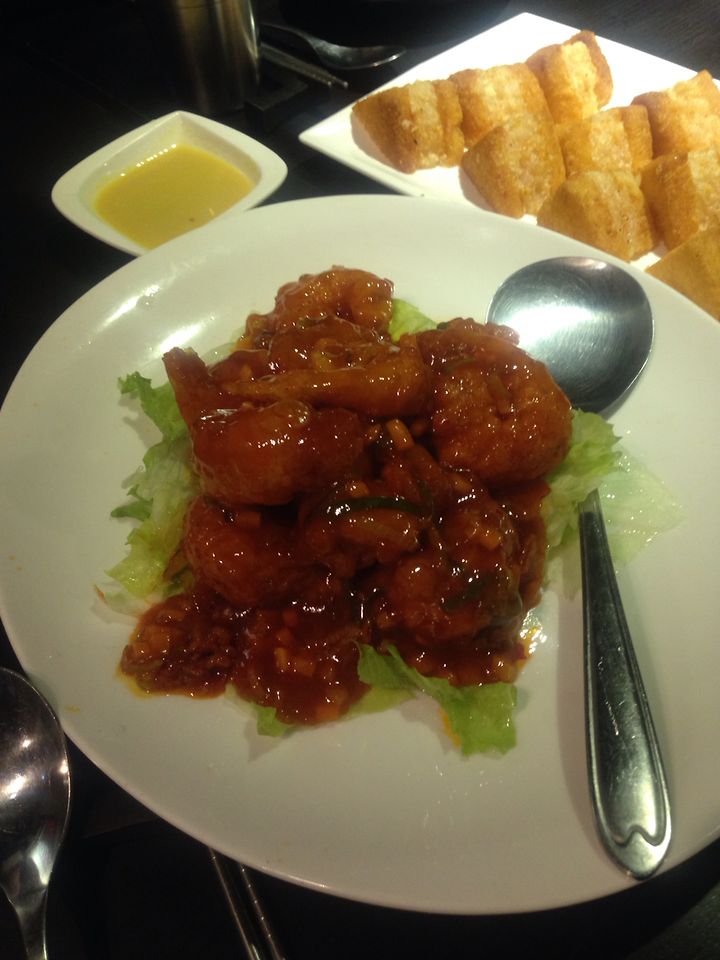 칠리새우, 짬뽕, 멘보샤, 숙주부침볶음입니다.