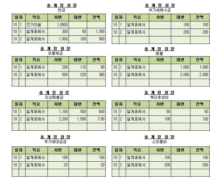 이렇게 거래를 계정과목별로 기록하게 되면 한 곳에 모아 놓는데, 이를 총계정원장(General Ledger)이라 합니다.